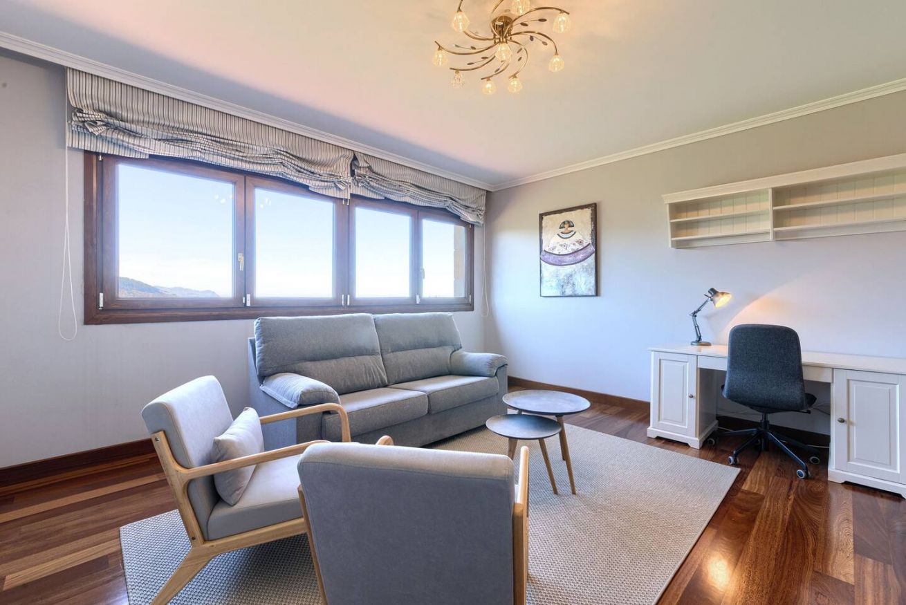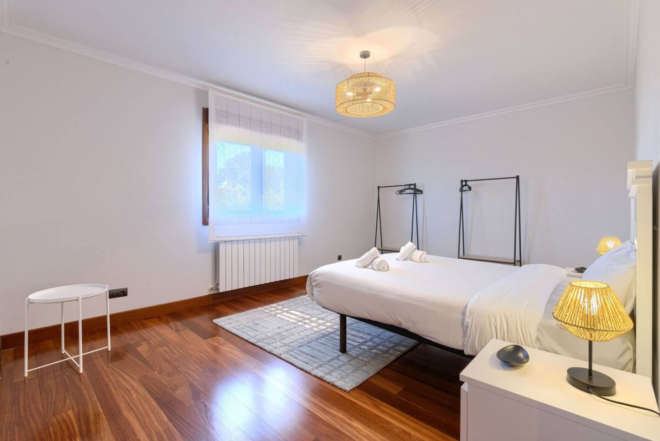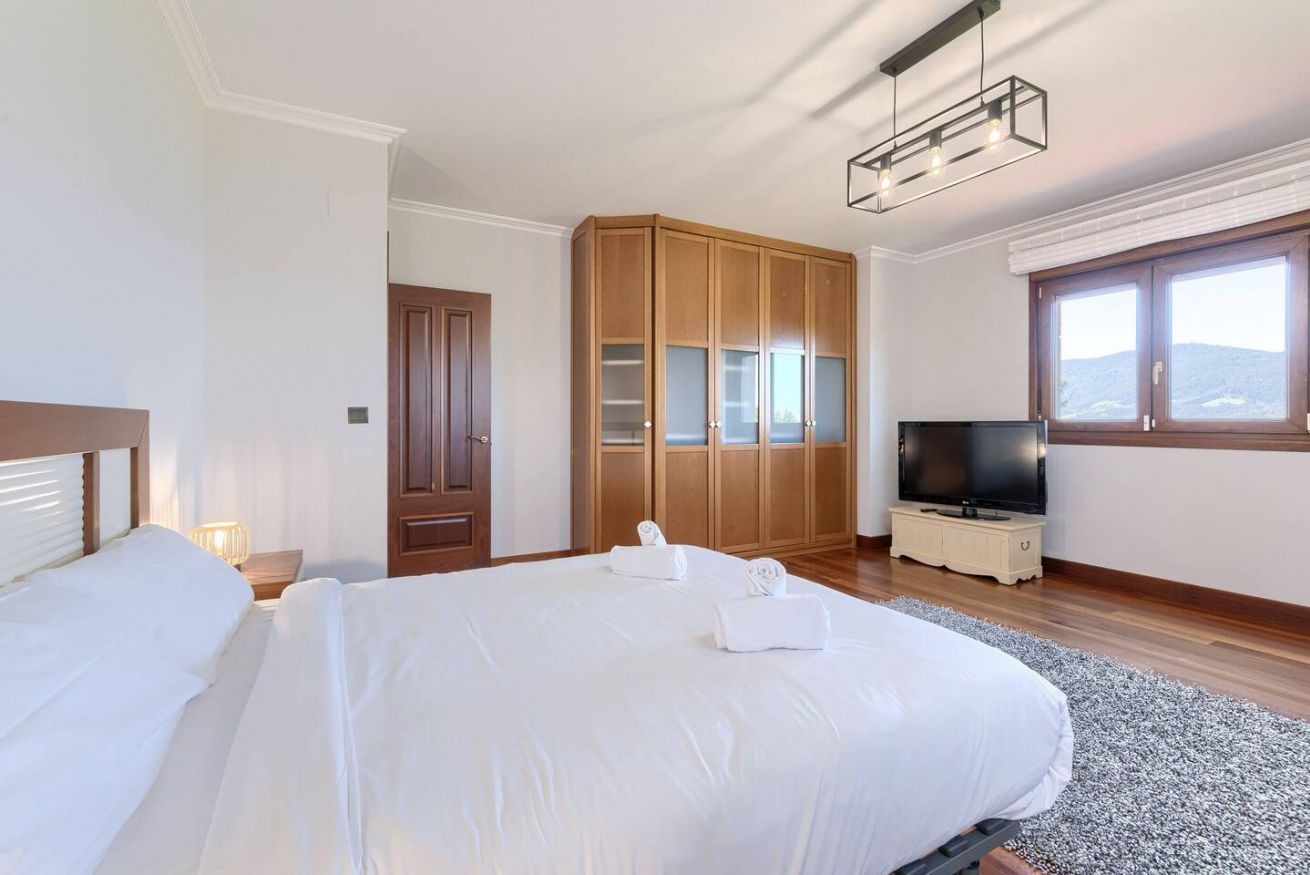 Esta acogedora casa cuenta con cuatro habitaciones, tres con cama de matrimonio y una con dos camas individuales, ideal para familias o grupos de amigos. Dispone de tres baños, uno de ellos con bañera, ofreciendo comodidad y privacidad. Su amplio jardín es perfecto para relajarse, mientras que sus impresionantes vistas al mar crean un ambiente único. Ubicada a pocos kilómetros de San Juan de Gaztelugatxe, es el lugar ideal para una escapada entre la montaña y la costa.